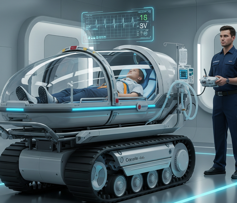 Genion’s Patient Transport domain focuses on delivering safe, efficient, and zero-lift evacuation solutions for frontline responders. Traditional manual carrying methods expose crews to high injury risk, slow movement in difficult environments, and compromise patient stability. The GENIE platform solves these challenges through its patented tracked mobility system, engineered to glide over snow, sand, mud, rocks, and other complex terrain. Whether performing routine transport, backcountry rescue, or critical-care transfers, the Patient Transport sector ensures faster, smoother, and more ergonomic movement — protecting both the patient and the provider at every stage of care.